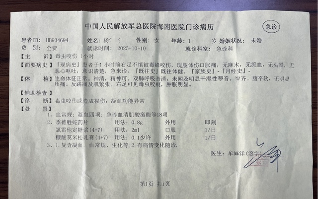 医院诊断和检验报告单显示,62岁连女士是毒蜂咬伤或造成损伤,右手指局部肿痛明显。1岁孙女右足可见毒虫咬痕,肿胀明显,诊断凝血功能异常。